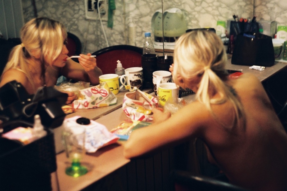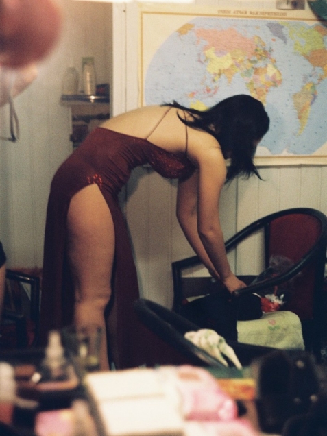 В какой-то момент я взяла в руки фотоаппарат и попыталась ухватить ее, ускользающую, без масок и поз. Так вышло, что фотографировала на пленку — она показалась более уместной. Ведь передавать я собиралась неуловимое, секундное, естественное, не постановочное. Боялась, что цифровой фотоаппарат вызовет неизбежное желание тут же оценить и подправить, сделать лучший кадр. Результат удивил и меня, и моих коллег. В тот момент впервые появились мысли о том, чтобы поделиться фотографиями с кем-то, далеким от мира стриптиза. Потом нашлись люди, которые поддержали идею. Вот так, довольно спонтанно, вдруг появилась возможность все-таки заглянуть одним глазом за занавес нашего ночного мира.