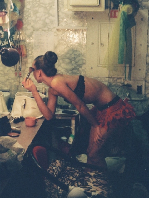 Прошло уже несколько лет, но наш маленький закулисный мирок не перестал меня очаровывать. Его секрет — в контрасте между тем, что видят люди в зале, и тем, что мы видим в гримерке. В занавесе, за который гости клуба не могут заглянуть. Есть что-то невыносимо трогательное в комнате, полной спящих стриптизерш: сегодня ночью в клубе не было людей. Меня завораживает эта искренняя, неотрепетированная красота, с которой обращаются так небрежно и практично. Она спрятана от посторонних глаз, скрыта — в не предписанных сценарием жестах, в штопке чулок и переодевании корсетов, в том, как девочки торопливо поправляют макияж между номерами, рассказывают друг другу последние новости, устало разбирают костюмы.
