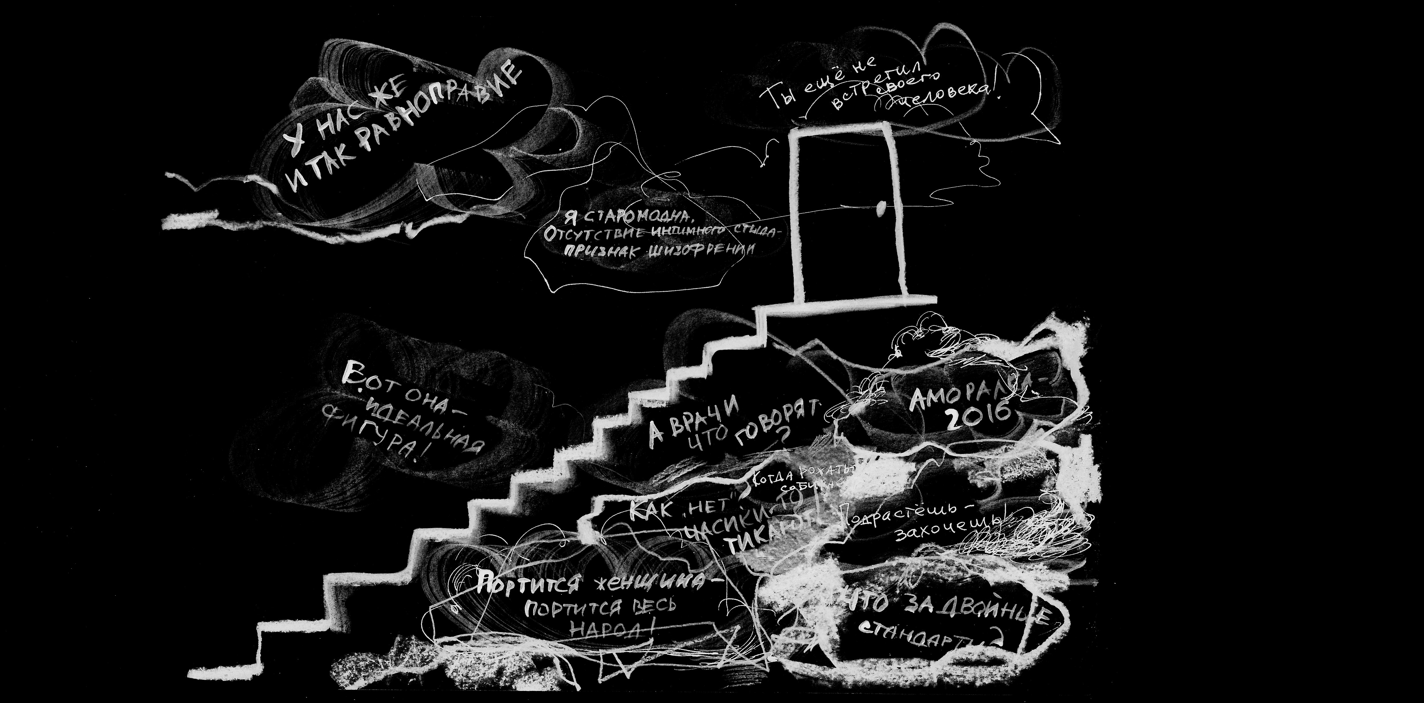 И потом, когда ты вырываешься из адского круга и попадаешь в фемпространство, тебе говорят: «Недостаточно феминна, ты не транс*женщина, а мужчина-насильник».